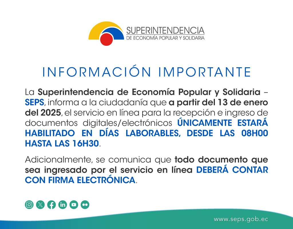 Estimado usuario, la SEPS le recuerda que puede realizar el ingreso de documentación de trámites en el correo electrónico